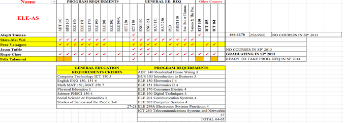 - The Department Chairperson and/or faculty assist the student with their Individual Education Plan by using an Academic Advising sheet.